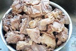 (4)待羊肉炖至熟透,捞出羊肉,留汤备用。